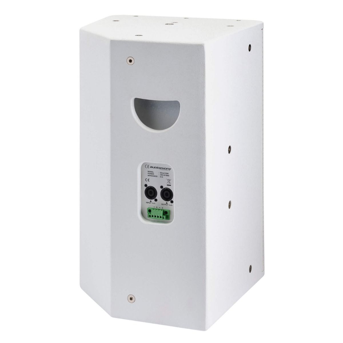 Algemeen : Afmetingen (cm) 50 x 32.9 x 32.5 Algemeen : Gewicht (kg) 14 Algemeen : Kleur wit Algemeen : Bevestiging 35mm stand adaptor, M8 Algemeen : IP rating indoor Audio : maximale spl (dB) 125 Audio : frequentie bereik 65 Hz – 20000 Hz (-10 dB), 70 Hz – 18000 Hz (-3 dB) Aansluiting : ingang speakon, Eurobloc Aansluiting : uitgang speakon Merk AUDIOPHONY EANCode 3662009028057