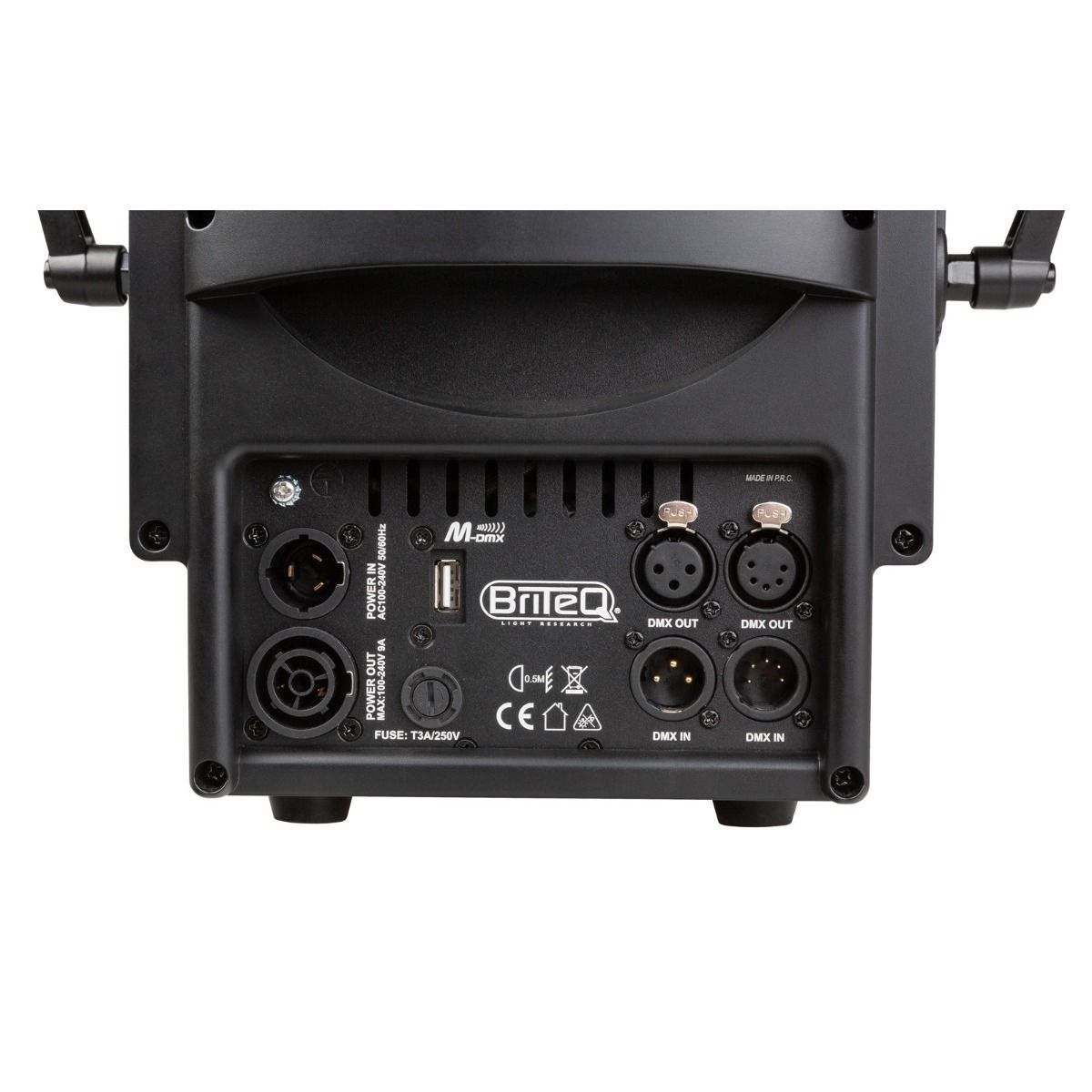 Algemeen : Afmetingen (cm) See drawing Algemeen : Gewicht (kg) 9.8 Algemeen : Stroomvoorziening AC 100 - 240V, 50/60Hz Algemeen : Energie label Nee Algemeen : Stroomverbruik W 160 Algemeen : Kleur zwart Algemeen : Display LCD Algemeen : Bevestiging optional omega bracket, M12 Algemeen : IP rating indoor Controle : modes standalone fixed, manual, DMX, Master/Slave Controle : protocol DMX, Wireless DMX, RDM Controle : programeerbaar Nee Controle : upgradable software Ja Controle : minimum DMX kanalen 1 Controle : maximum DMX kanalen 9 Licht : type fitting Nee Licht : Lux 3141 (@ 5 meter, beam 12.5°) Licht : lumen output max (lm) 9178 Licht : lamp COB Licht : min. kleurtemperatuur (K) 3150 Licht : max. kleurtemperatuur (K) 3250 Licht : CRI 97 Licht : kleuren Warm wit Licht : kleuren mengen Nee Licht : functies gemotorizeerde zoom Licht : zoombereik 12.5° - 56.2° Licht : max. vernieuwingsfrequentie (kHz) 20 Aansluiting : ingang 3 pin XLR, 5 pin XLR, wireless DMX optional, usb, rdm, PowerCon® TRUE1 or compatible Aansluiting : uitgang 3 pin XLR, 5 pin XLR, PowerCon® TRUE1 or compatible Merk BRITEQ EANCode 5420025660594