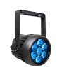 - Deze compacte IP65 outdoor projector werkt op batterijen en is uitgerust met 7 RGBL-LED's van 10W.