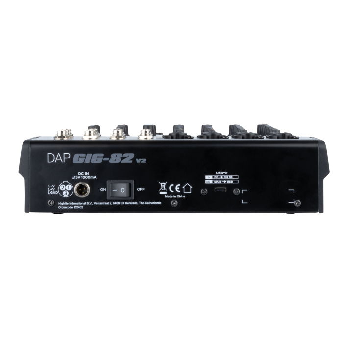 The DAP GIG-82 V2 is a versatile 8-channel analogue mixing console designed for live sound applications, small performances, presentations, and home recording setups. Despite its compact footprint, it offers a wide range of professional features and onboard effects that make it a reliable companion for musicians, sound engineers, and content creators.