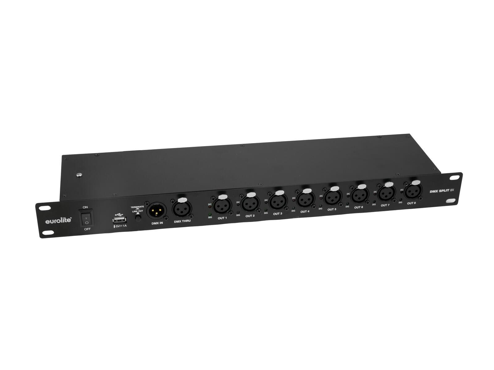 - DMX splitter for splitting one DMX input signal to 8 DMX outputs