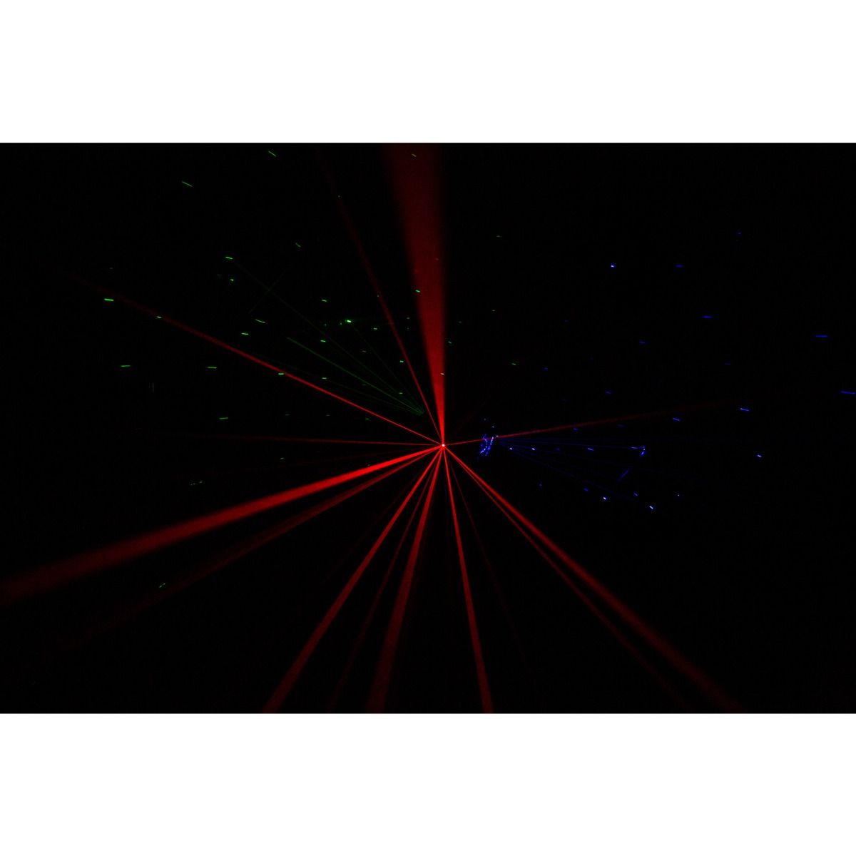- Kamervullend lichteffect dankzij :- 3 x 50mW lasers (1 Rood, 1 Groen, 1 Blauw)