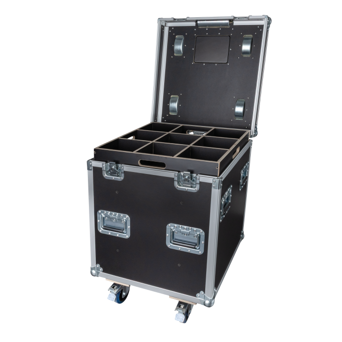 Crafted from premium 9 mm plywood and fitted with reliable Penn Elcom hardware, this case is built to withstand the rigours of touring and frequent use. Four 100 mm castors with brakes ensure smooth mobility and secure placement, while two spring-loaded handles on each side provide a comfortable grip for lifting and handling. Four stacking dishes allow multiple cases to be safely stacked without the risk of shifting or rolling.