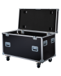 The case is constructed from durable 9 mm plywood with recessed handles in strategic locations for easy handling and Penn Elcom butterfly latches to keep the lid closed. It is fitted with 4 swivel wheels with brakes for easy manoeuvrability.